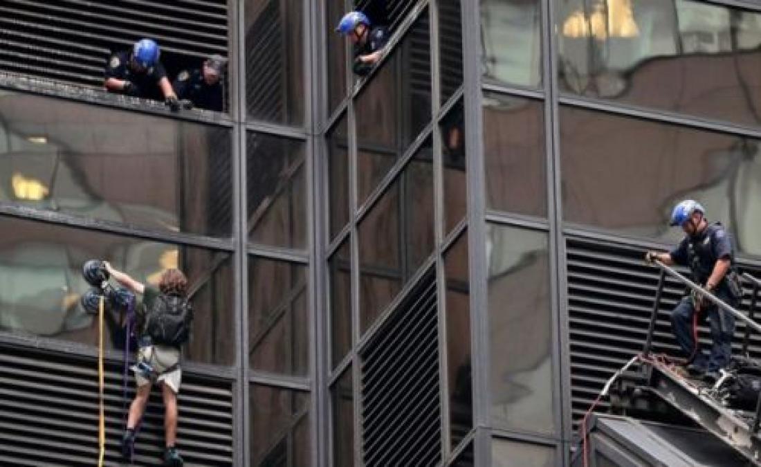 Η αστυνομία της Νέας Υόρκης ανέσυρε μέσα στο κτίριο γνωστό ως Trump Tower ("Πύργο του Τραμπ") στο Μανχάταν χθες έναν εικοσάχρονο, υποστηρικτή του Ντόναλντ Τραμπ, ο οποίος σκαρφάλωνε την πρόσοψη του ουρανοξύστη επί τρεις ώρες, χρησιμοποιώντας βεντούζες και ιμάντα αναρρίχησης.