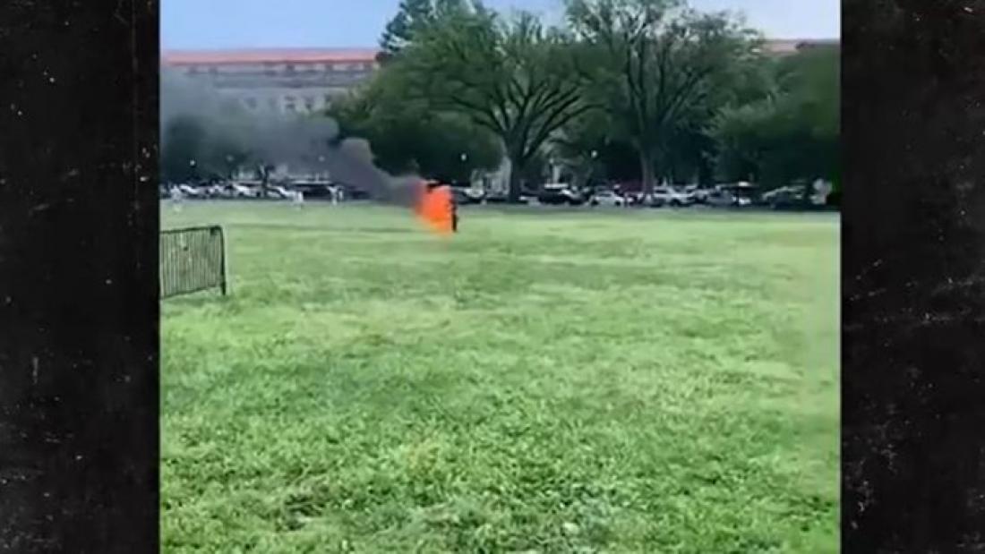 Το συμβάν σημειώθηκε κοντά στο μνημείο του Τζορτζ Ουάσινγκτον, σε μια περιοχή όπου κυκλοφορούν τουρίστες, με αστυνομικούς και πυροσβέστες να σπεύδουν για να σβήσουν τη φωτιά.
