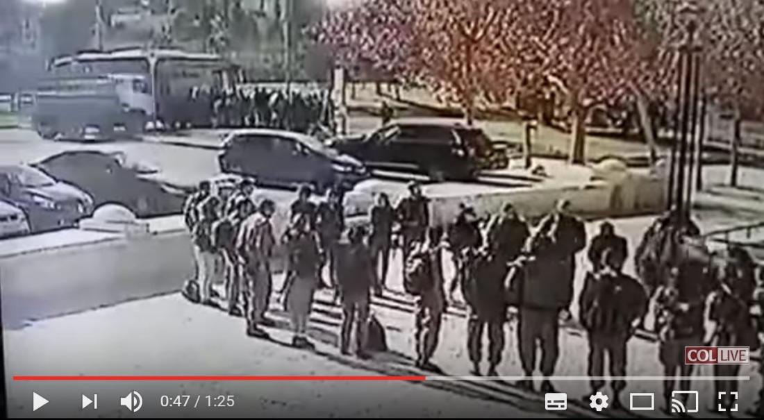 Το φορτηγό διακρίνεται να πέφτει πάνω σε μια ομάδα ανυποψίαστων στρατιωτών, οι οποίοι στέκονταν αμέριμνοι στην άκρη δημοφιλούς πεζόδρομου. Αμέσως μετά όσοι γλίτωσαν, πανικόβλητοι κάποιοι άλλοι τρέχουν να σωθούν.