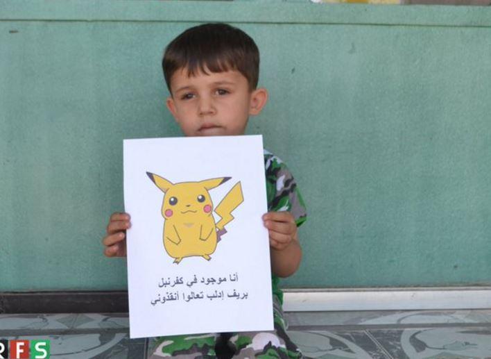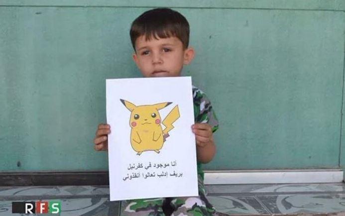 Συγκίνηση προκαλούν οι φωτογραφίες, μικρών παιδιών από τη Συρία, που κρατούν στα χέρια τους εικόνες με χαρακτήρες του Pokemon Go, στις οποίες αναγράφεται το όνομα τους, αλλά και η πόλη διαμονής τους.