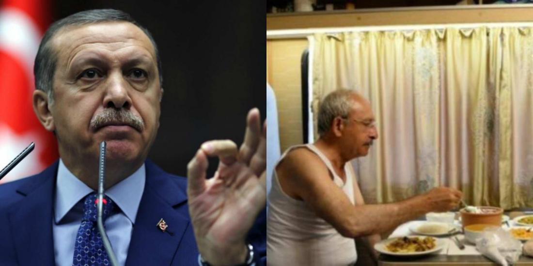 «Ένας πολιτικός ηγέτης και δη ο ηγέτης της αξιωματικής αντιπολίτευσης, καλεί έναν δημοσιογράφο και του λέει ‘τράβα με φωτογραφία’ και μετά ισχυρίζεται ότι ηγείται του κόμματος του Ατατούρκ. Έχεις δει ποτέ τον Ατατούρκ να τρώει με φανελάκι», ρώτησε ο Ερντογάν απευθυνόμενος στον Κιλιτσντάρογλου για να προσθέσει ότι «αυτές είναι κωμικοτραγικές εικόνες. Κάνουν τους ίδιους τους τούς εαυτούς να φαίνονται οικτροί».