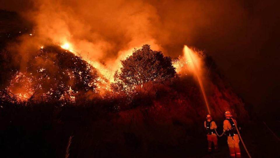 H μεγάλη πυρκαγιά που μαίνεται στην Καλιφόρνια, έχοντας καταστρέψει ήδη περισσότερα από 12 σπίτια και έχοντας στοιχίσει την ζωή ενός ανθρώπου, αναγκάζει χιλιάδες κατοίκους της περιοχής να εγκαταλείψουν τις εστίες τους, καθώς οι φλόγες κατακαίνε ό,τι συναντήσουν στο πέρασμά τους για τέταρτη συνεχόμενη ημέρα σε απρόσιτα φαράγγια και στους πρόποδες βόρεια του Λος Άντζελες, τόνισαν σήμερα αξιωματούχοι.