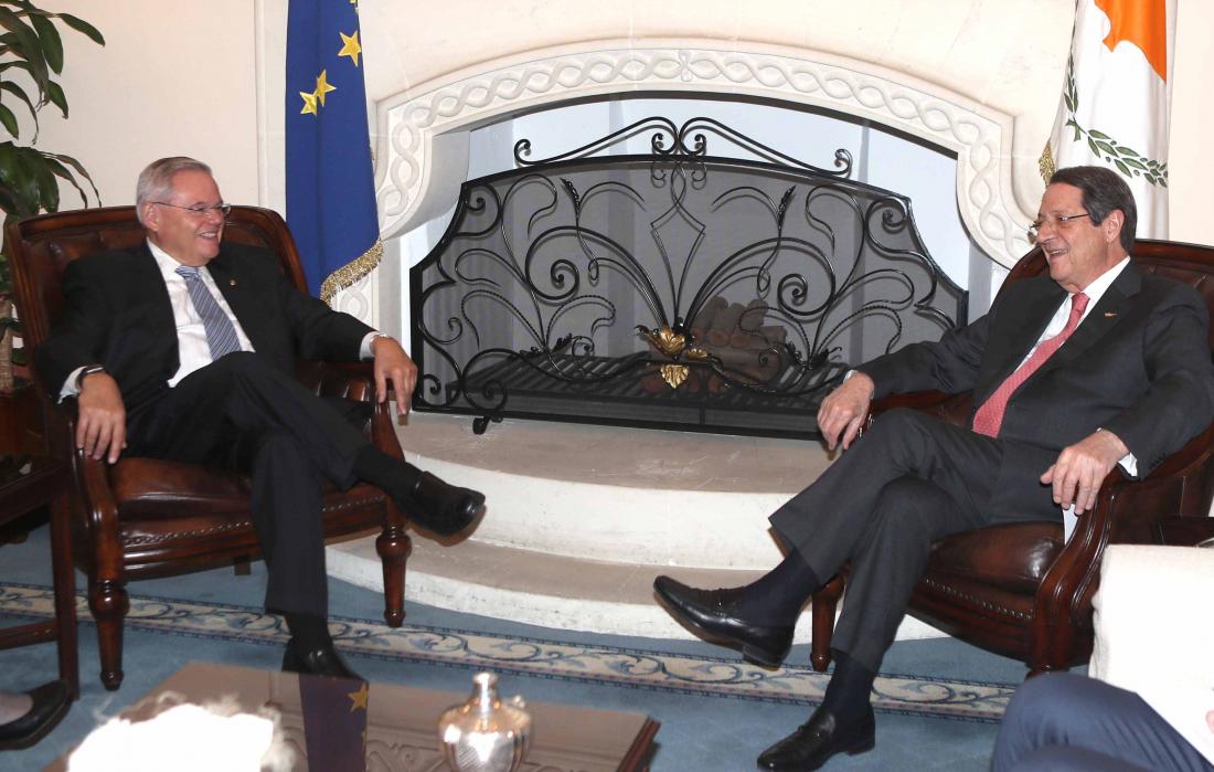 Στην Κύπρο βρέθηκε ο Αμερικάνος Γερουσιαστής Ρόμπερτ Μενέντεζ, όπου είχε συνάντηση με τον Πρόεδρο της Κυπριακής Δημοκρατίας Νίκο Αναστασιάδη και τον υπουργό Εξωτερικών, Νίκο Χριστοδουλίδη.