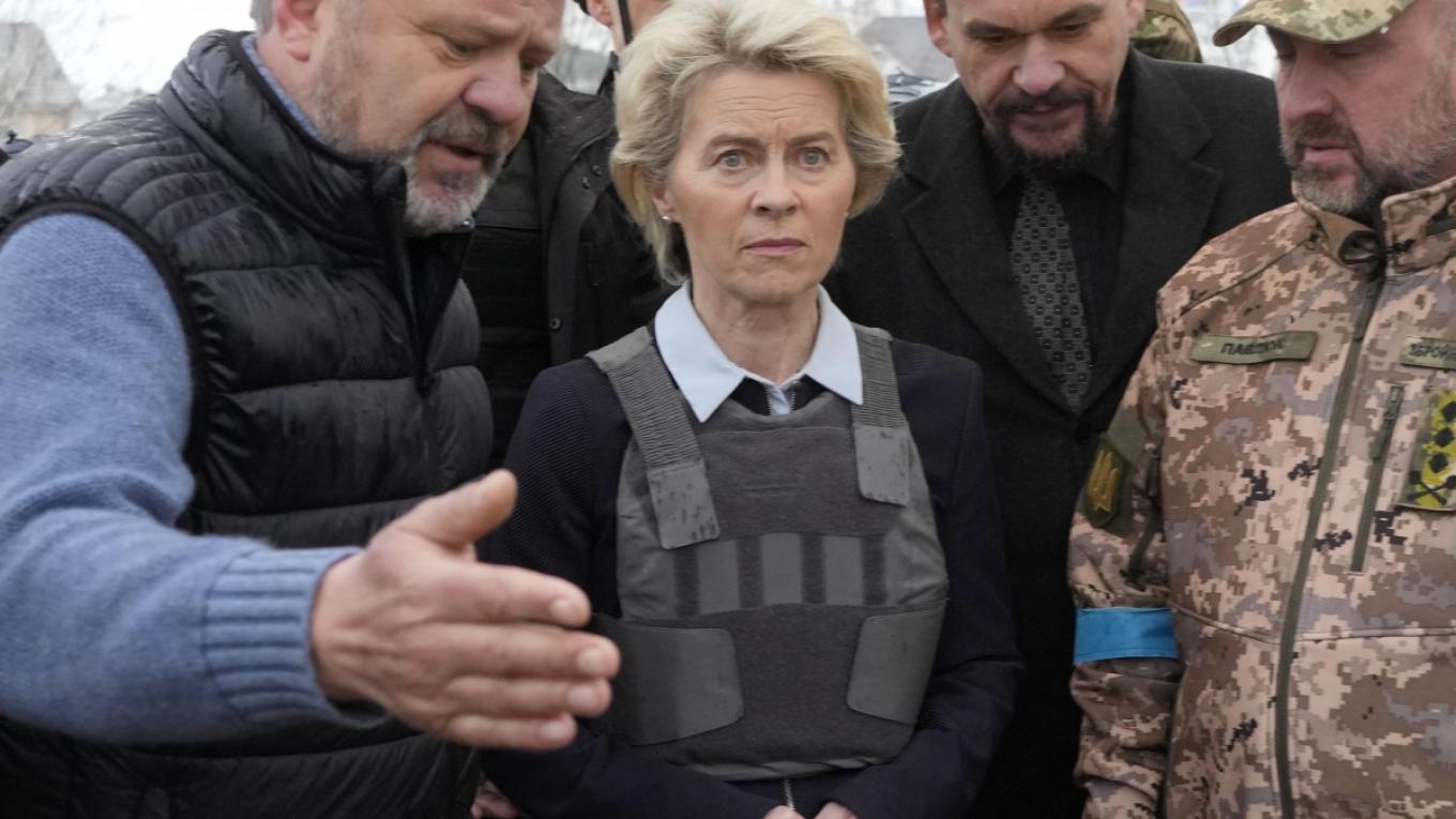 Η πρόεδρος της Κομισιόν φορώντας αλεξίσφαιρο γιλέκο είδε τους ομαδικούς τάφους στην μαρτυρική πόλη και στη συνέχεια βρέθηκε στο Κίεβο για να συναντήσει τον Ζελένσκι