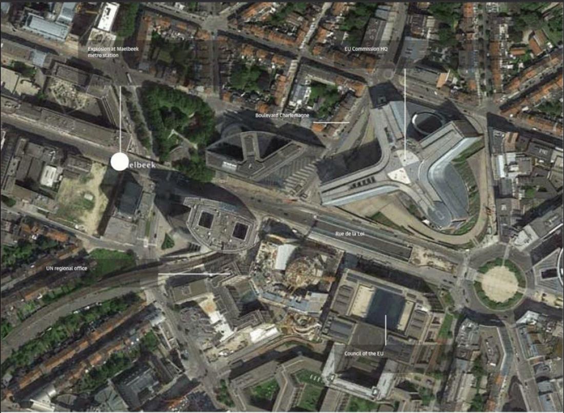 (Η αεροφωτογραφία δείχνει πόσο κοντά η έκρηξη του μετρό ήταν στα κτίρια της ΕΕ στις Βρυξέλλες)