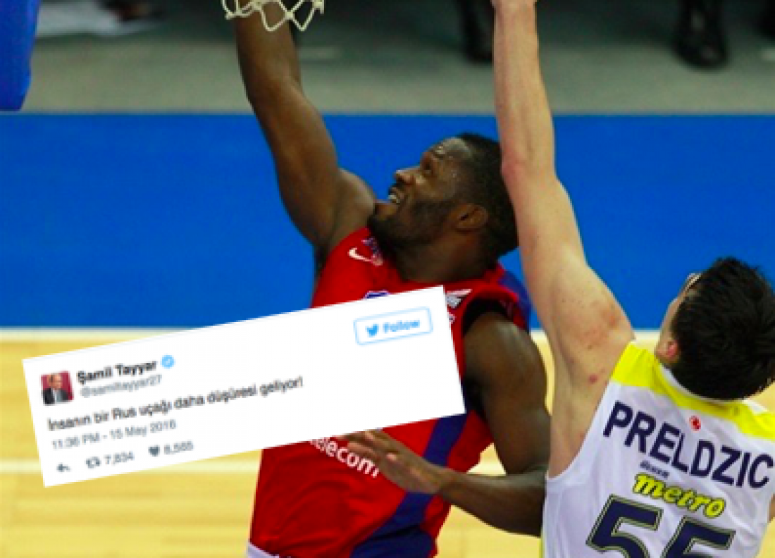 Μετά τη νίκη της ομάδας μπάσκετ της ΤΣΣΚΑ εναντίον της Φενέρμπαχτσε,στον τελικό της Ευρωλίγκας ο Τούρκος πολιτικός Samil Tayyar έγραψε στο twitter ότι τώρα πρέπει να καταρριφθεί ένα ακόμη ρωσικό μαχητικό αεροσκάφος!