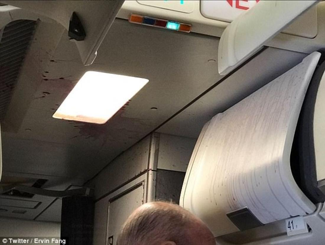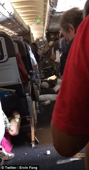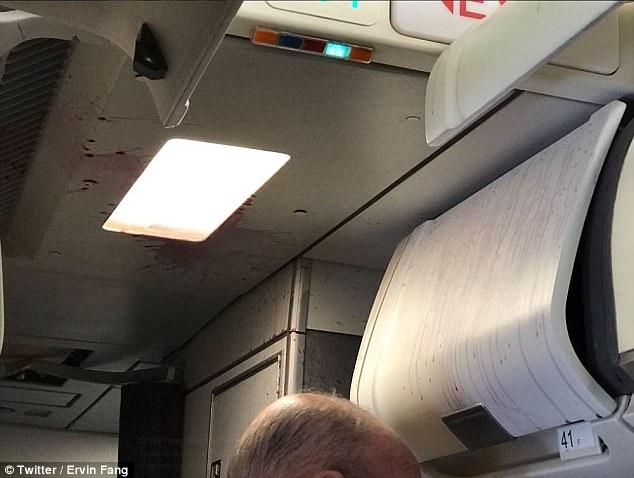 Φαίνονται τα αίματα των επιβατών που τραυματίστηκαν πέφτοντας πάνω στα πλαστικά του αεροπλάνου και αποτυπώνεται το χάος και ο πανικός που επικράτησαν κατά τη διάρκεια της πτήσης τρόμου.