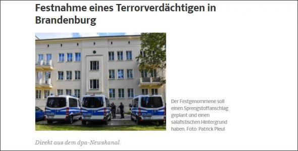 Ο συλληφθείς επρόκειτο σύμφωνα με πληροφορίες της αστυνομίας να πραγματοποιήσει τρομοκρατική επίθεση σε φεστιβάλ στην πόλη Eisenhüttenstadt.