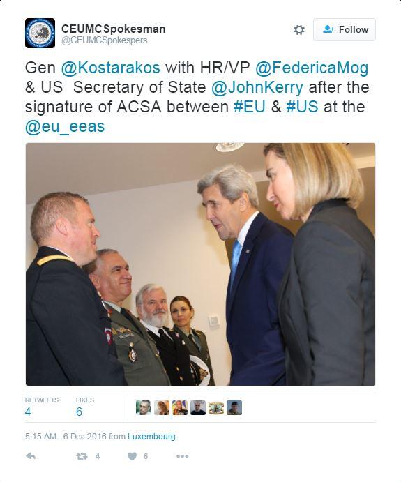 Μετά την υπογραφή της ΑCSA, ο υπουργός Εξωτερικών των ΗΠΑ και η Μογκερίνι, συναντήθηκαν με τον στρατηγό Μιχαήλ Κωσταράκο, πρόεδρο της Στρατιωτικής Επιτροπής της Ευρωπαϊκής Ένωσης.