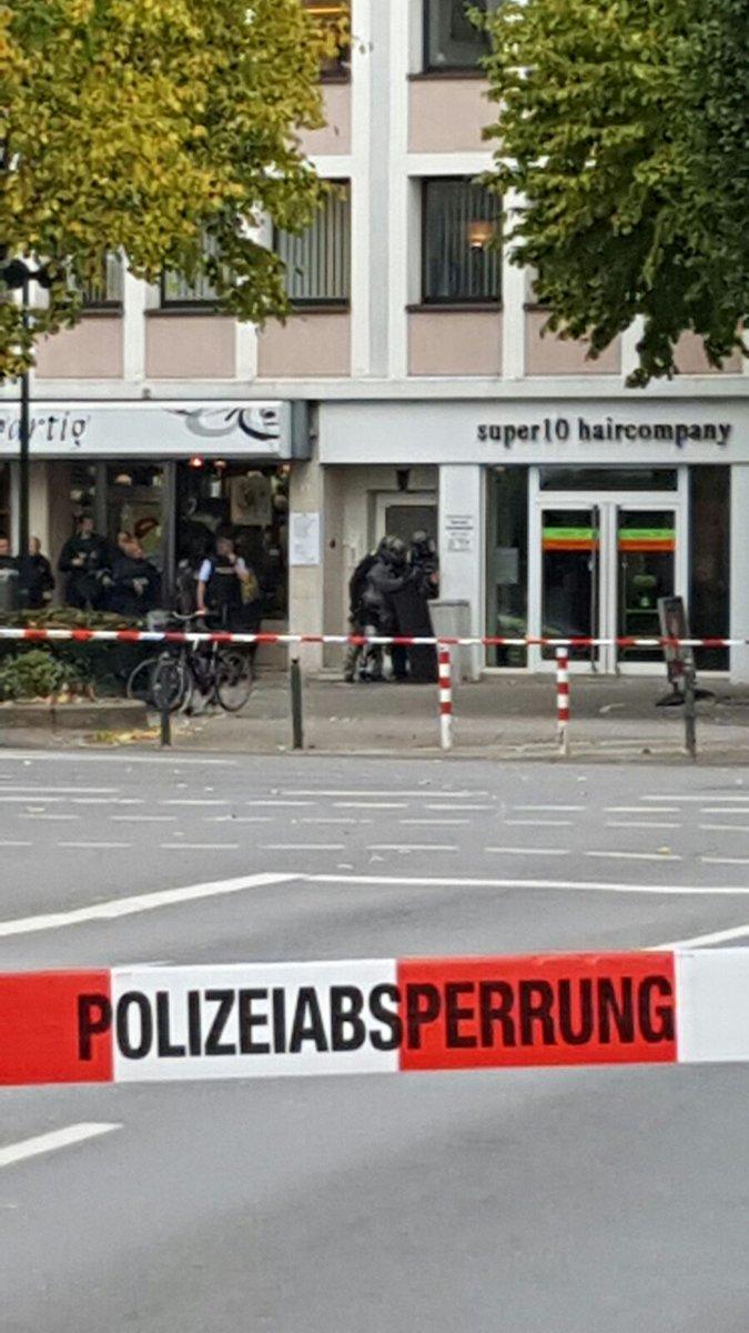 Σύμφωνα με την εφημερίδα Aachener Zeitung, ο ύποπτος πυροβόλησε τουλάχιστον μία φορά μέσα στο κομμωτήριο. Κατόπιν έφυγε κι έχει ταμπουρωθεί σε ένα διαμέρισμα.