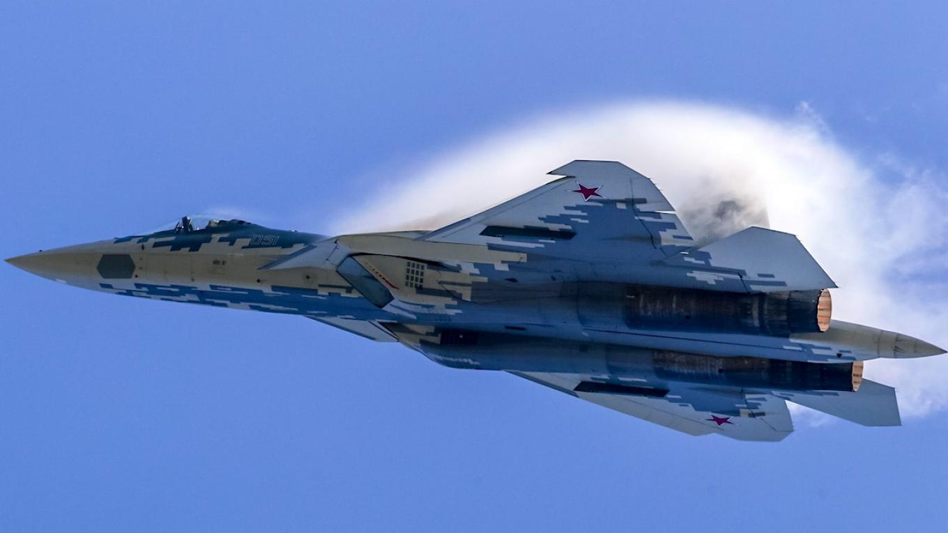 Δύο μαχητικά Su-35 για την κάλυψη του σχηματισμού.
