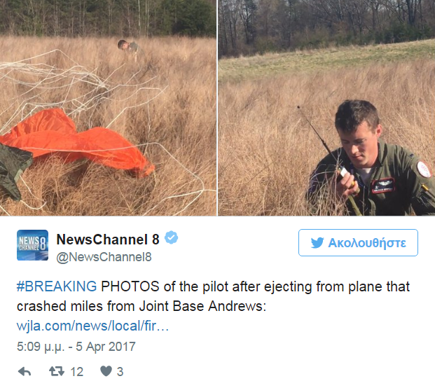 Σύμφωνα με το NBC, ο πιλότος της D.C. Air National Guard's 113th Fighter Wing βγήκε έξω από το αεροσκάφος με αλεξίπτωτο και δεν φέρει κανέναν τραυματισμό. Αμέσως σήμανε συναγερμός στις αρχές της βάσης Άντριους που έσπευσαν στο σημείο.