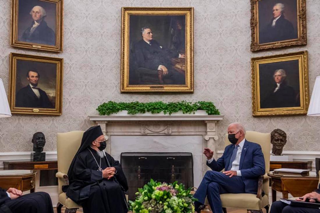 Σε πολύ καλό κλίμα πραγματοποιήθηκαν οι συναντήσεις του Οικουμενικού Πατριάρχη Βαρθολομαίου με τον Πρόεδρο των ΗΠΑ Τζο Μπάιντεν και με τον Αμερικάνο υπουργό Εξωτερικών Άντονι Μπλίνκεν. Όπως υπογράμμισαν εκκλησιαστικοί κύκλοι, δεν επρόκειτο για εθιμοτυπικές επαφές, καθώς οι δύο συναντήσεις έγιναν με διευρυμένες αντιπροσωπείες και με τη συμμετοχή ανώτερων αξιωματούχων του Λευκού Οίκου και του Στέιτ Ντιπάρτμεντ. Η αντιμετώπιση της κλιματικής κρίσης, η προώθηση των θρησκευτικών ελευθερίων ανά τον κόσμο, αλλά και η αποτελεσματική και κοινωνικά δίκαιη διαχείριση της πανδημίας ήταν ορισμένα από τα θέματα που βρέθηκαν στο επίκεντρο αυτών των συναντήσεων.