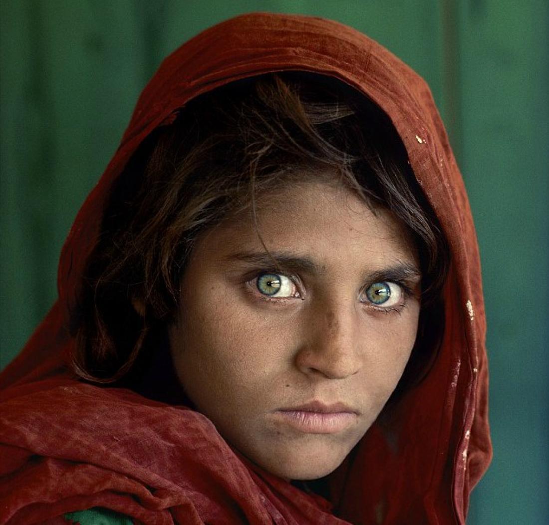Η εικόνα της 12χρονης τότε Σαρμπάρ από το Αφγανιστάν που ζούσε σε πακιστανικό καταυλισμό προσφύγων και φωτογραφήθηκε από τον Στιβ Μακάρεϊ είναι το πιο διάσημο εξώφυλλο στην ιστορία του περιοδικού.