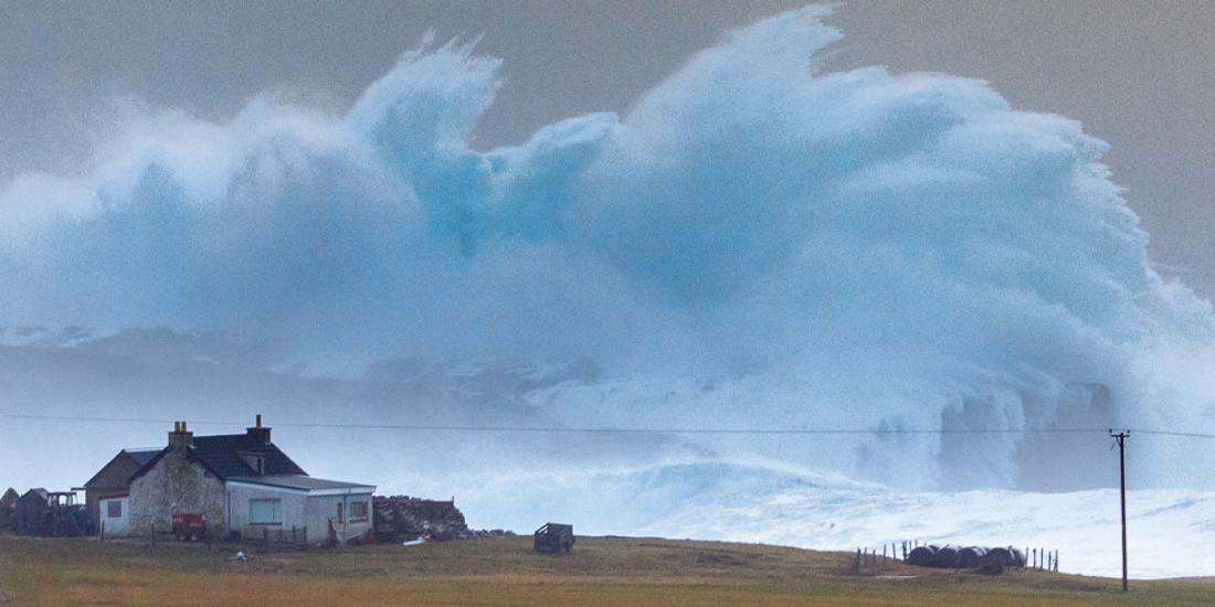 Μοιάζει με σύννεφο που κατέβηκε χαμηλά, αλλά δεν είναι. Πρόκειται για ένα τεράστο κύμα ύψους 14 μέτρων που απαθανάτισε ο φωτογράφος Ράιαν Σάντισον στα νησιά Σέτλαντ της Σκοτίας, μια ημέρα μετά τα Χριστούγεννα.