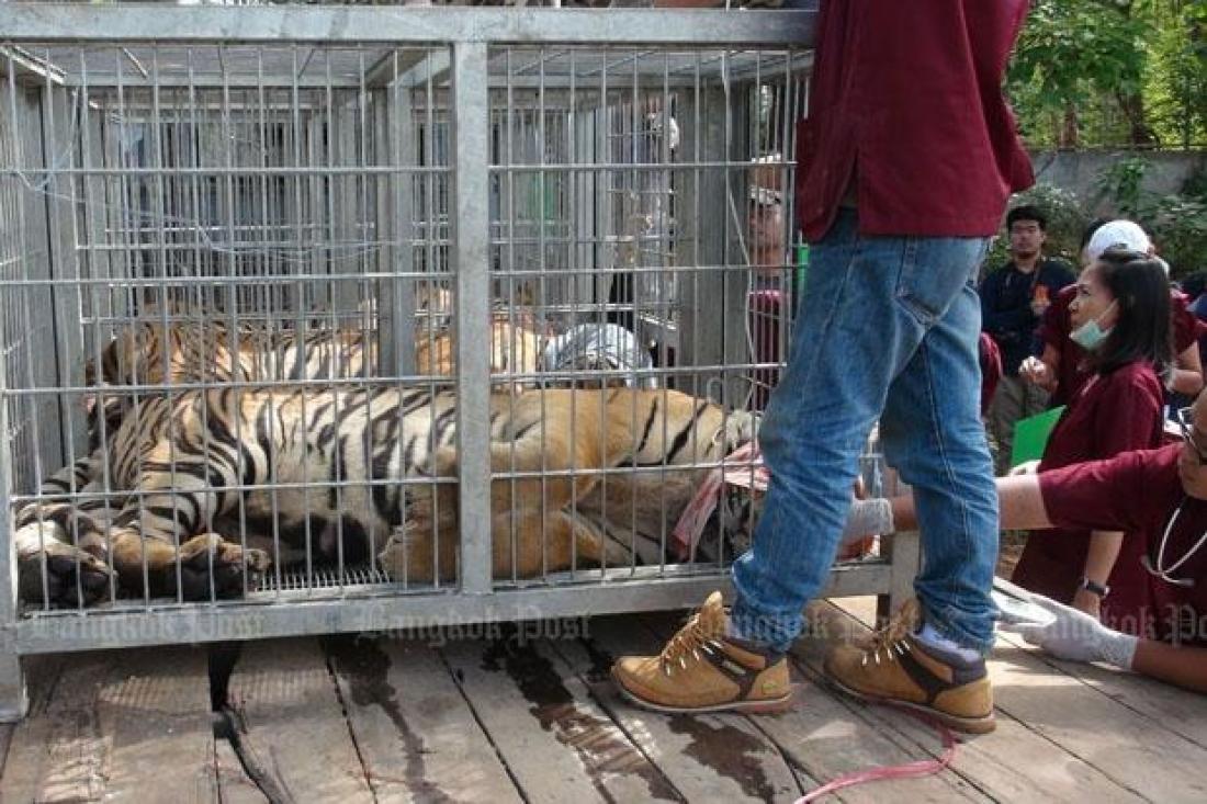 Στον «Ναό των Τίγρεων», που βρίσκεται δυτικά της Μπανγκόκ στην επαρχία Καντσαναμπούρι, οι μοναχοί περιφέρουν δεκάδες τίγρεις με λουριά και χρεώνουν τους τουρίστες που τραβούν «σέλφις» με τα ζώα.