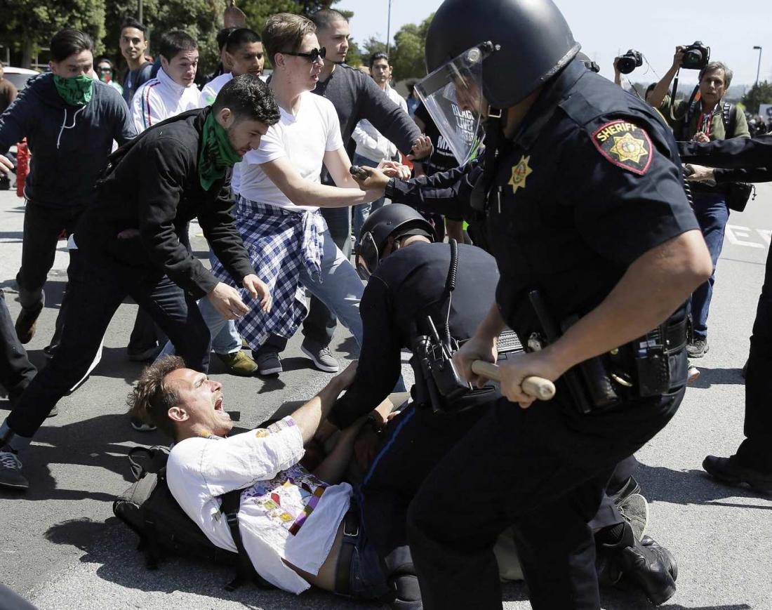 Σχεδόν 1.000 διαδηλωτές, ορισμένοι εκ των οποίων εκτόξευαν αυγά εναντίον των αστυνομικών, συγκεντρώθηκαν για να εκφράσουν την αντίθεσή τους στον Ντόναλντ Τραμπ και τις απόψεις που εκφράζει, στο περιθώριο μιας ομιλίας που θα εκφωνήσει ο μεγιστάνας στην Καλιφόρνια.