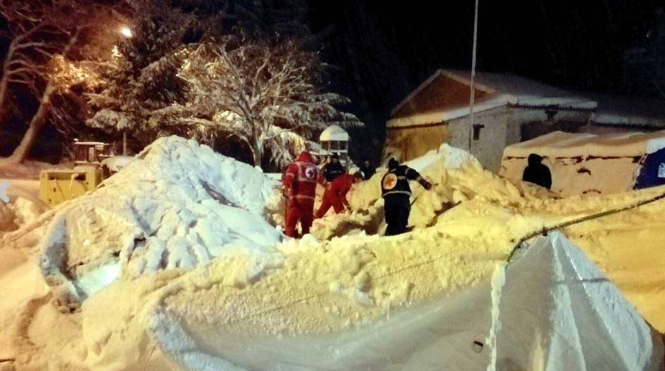 Οι άνδρες και οι γυναίκες της Πολιτικής Προστασίας και οι πυροσβέστες, νωρίτερα, κατάφεραν να απεγκλωβίσουν μια γυναίκα και το μικρό παιδί της, που δεν μπορούσαν να βγουν από τι σπίτι τους, το οποίο κατέρρευσε μερικώς, λόγω του σεισμού και της πίεσης του χιονιού. Η Πολιτική Προστασία προσπαθεί, και αυτή την ώρα, να καθαρίσει τους δρόμους από το χιόνι που έχει «παγιδεύσει» κατοίκους δεκάδων οικισμών της κεντρικής Ιταλίας, μέσα στα σπίτια τους.