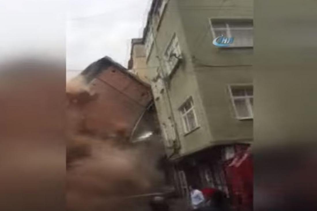 Πανικό προκάλεσε την Παρασκευή, η θεαματική κατάρρευση ενός ακατοίκητου πενταώροφου κτιρίου στην καρδιά της Κωνσταντινούπολης, λίγα μόλις μέτρα από την πλατεία Ταξίμ. Σε βίντεο που κατέγραψε περαστικός το κτίριο διακρίνεται να καταρρέει υψώνοντας ένα σύννεφο σκόνης στην περιοχή. Ο κόσμος που περνά από το σημείο πανικοβάλλεται κι αρχίζει να τρέχει για να γλιτώσει.