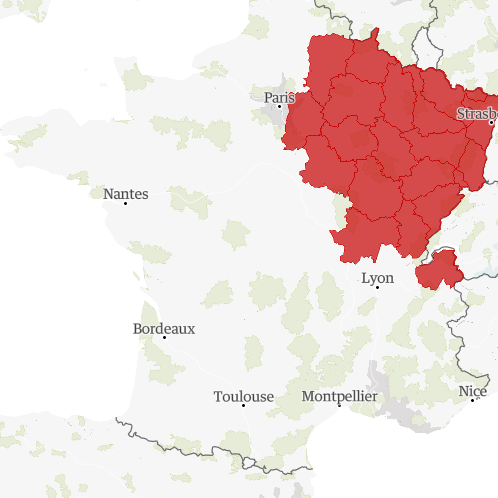 Πριν από τον πόλεμο, αυτές οι περιοχές φιλοξενούσαν περίπου 11 εκατομμύρια Ουκρανούς. Για να το θέσει σε ένα πλαίσιο, o Guardian απεικόνισε ορισμένες σε γενικές γραμμές συγκρίσιμες κατοικημένες περιοχές σε τρεις ευρωπαϊκές χώρες και μία πολιτεία των ΗΠΑ. Οι σκιασμένες περιοχές αντιπροσωπεύουν πληθυσμούς περίπου 11 εκατομμυρίων Γάλλων, Βρετανών, Ιταλών και Αμερικανών πολιτών.