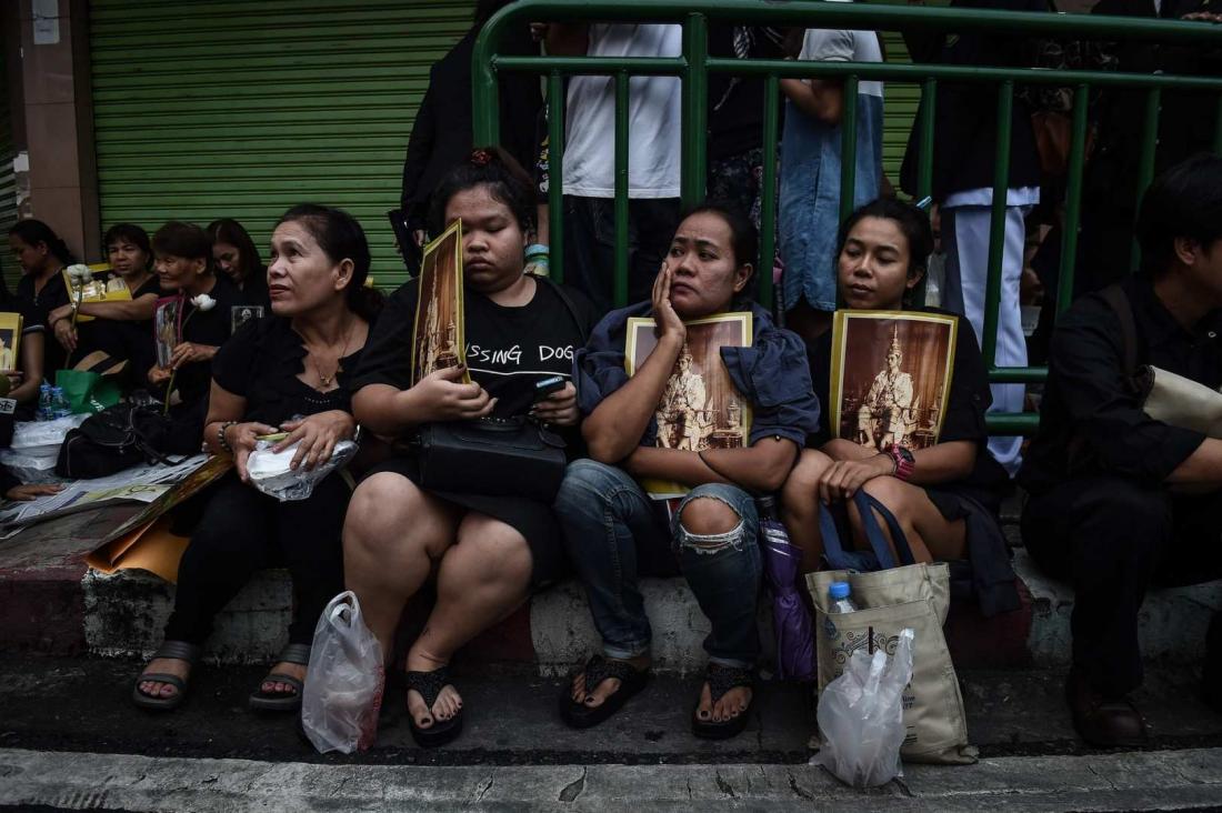Η σορός του βασιλιά της Ταϊλάνδης Μπουμιμπόλ Αντουλιαντέι μεταφέρθηκε σήμερα από το νοσοκομείο που πέθανε δια μέσου του ποταμού Τσάο Πράγια στο ανάκτορο στο κέντρο της παλιάς πόλης της Μπανγκόκ, ενώ δεκάδες χιλιάδες μαυροφορεμένοι Ταϊλανδέζοι κρατώντας φωτογραφίες και λουλούδια περίμεναν υπομονετικά σε όλο το μήκος της διαδρομής.