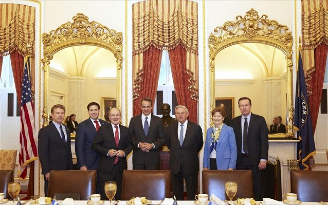 Ο πρωθυπουργός συναντήθηκε αρχικά με μέλη της Επιτροπής Εξωτερικών Σχέσεων της Γερουσίας, η οποία ασκεί σημαντική επιρροή στη διαμόρφωση της αμερικανικής εξωτερικής πολιτικής και στελεχώνεται από εξέχοντες, πολύπειρους γερουσιαστές που έχουν ηγετικό ρόλο στα δύο μεγάλα κόμματα των ΗΠΑ. Μέλη της Επιτροπής, κυρίως ο ανώτερος Δημοκρατικός Robert Menendez, πρωτοστάτησαν στην προώθηση και υπερψήφιση του East Med Act τον Δεκέμβριο.