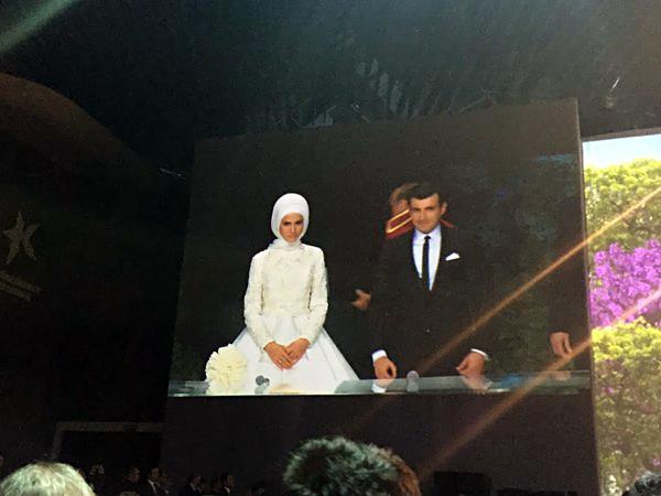 Σχεδόν 6.000 άνθρωποι είχαν προσκληθεί στον γάμο, σύμφωνα με τα τουρκικά μέσα ενημέρωσης που πρόβαλαν φωτογραφίες της νύφης, μέσα στο αυτοκίνητο που την μετέφερε στον χώρο της τελετής, με τα μαλλιά καλυμμένα με την ισλαμική μαντίλα.