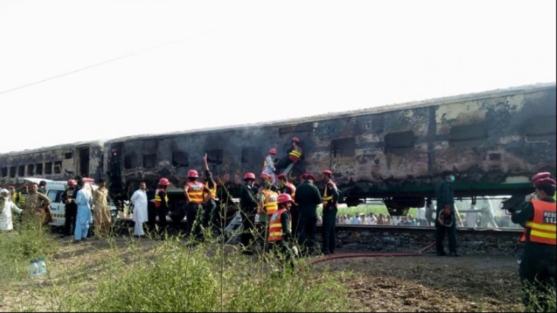 Τουλάχιστον 71 άνθρωποι σκοτώθηκαν, ανάμεσά τους πολλοί προσκυνητές, σε πυρκαγιά που ξέσπασε σήμερα το πρωί σε τραίνο στο Πακιστάν μετά την έκρηξη φιάλης γκαζιού. Το τραίνο βρίσκεται τώρα ακινητοποιημένο σε περιοχή κοντά στην πόλη Ραχίμ Γιαρ Χαν, στο νότιο τμήμα της επαρχίας Πουντζάμπ.