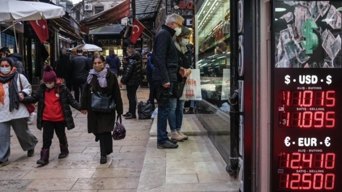 Το εθνικό νόμισμα της Τουρκίας έχασε σχεδόν 44% της αξίας του έναντι του δολαρίου κατά το 2021: σήμερα το πρωί η ισοτιμία ήταν 14,11 λίρες για ένα δολάριο και 15,7 λίρες για ένα ευρώ, καταγράφοντας πτώση κατά περίπου μισή μονάδα.