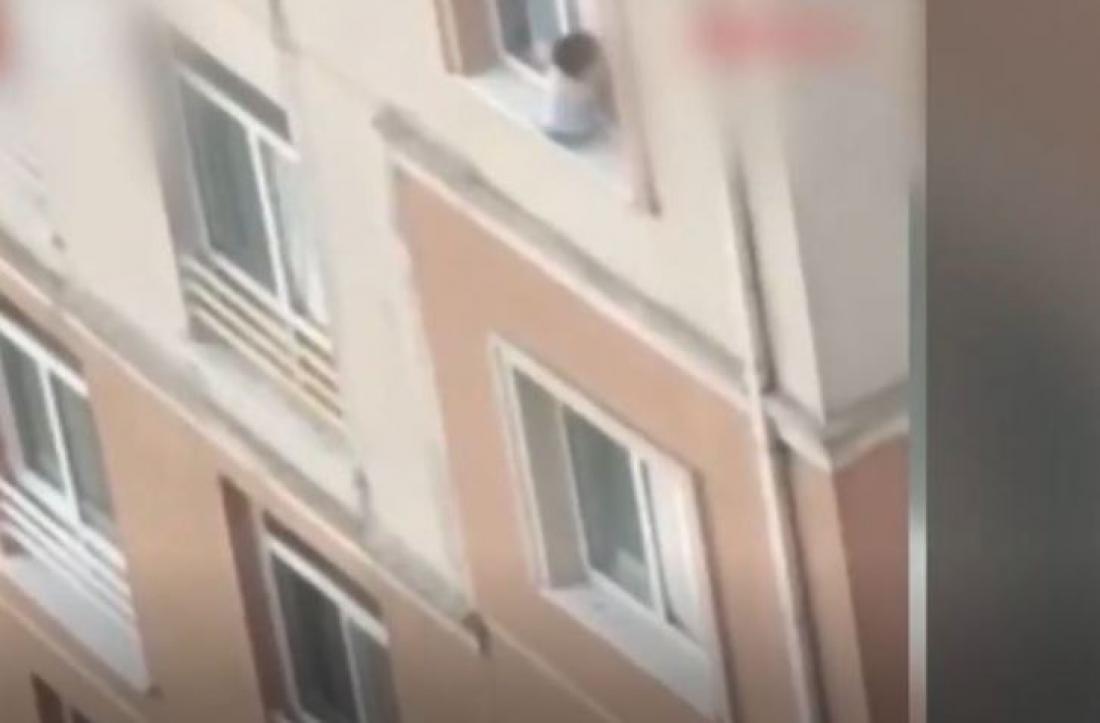 Πιο συγκεκριμένα στο βίντεο που έρχεται από την Τουρκία φαίνεται ένα νήπιο να κάθεται στο περβάζι παράθυρου πολυκατοικίας.