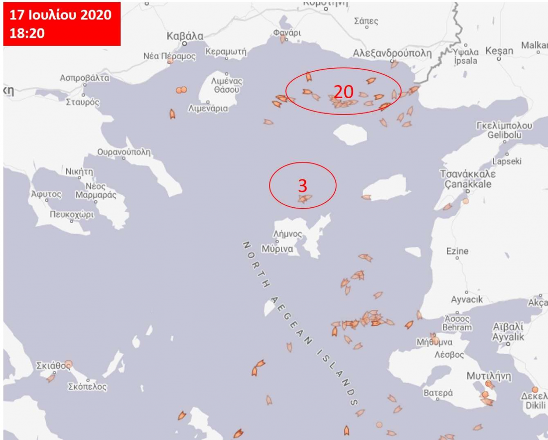 Τα 23 από αυτά βρίσκονταν μεταξύ Λήμνου και Σαμοθράκης, ενώ άλλα 4 έχουν κυκλώσει το Φαρμακονήσι.