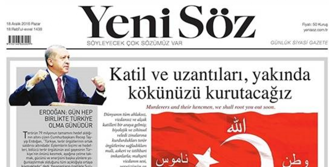 Η φιλοκυβερνητική εφημερίδα Yeni Soz την επομένη της βομβιστικής επίθεσης στην , εκτοξεύει απειλές και υποδαυλίζει την εχθρότητα .