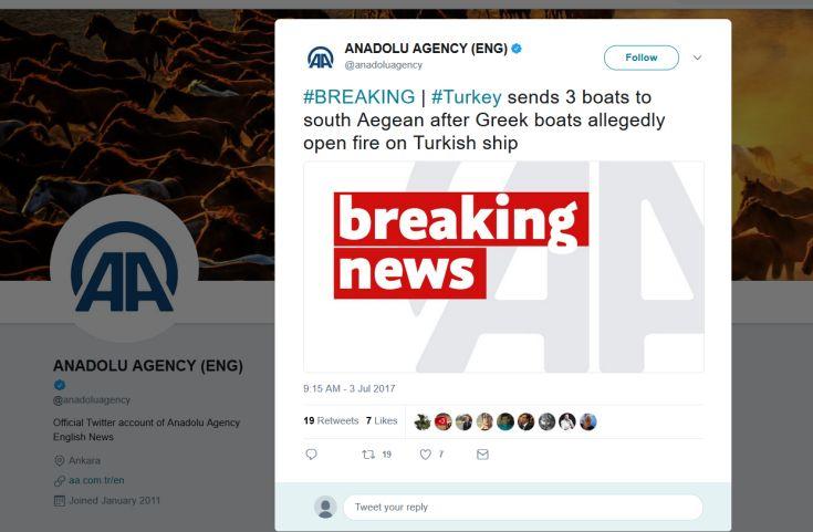 Ειδικότερα, όπως αναφέρει το τουρκικό πρακτορείο, η Τουρκία στέλνει τρία πλοία στο Αιγαίο κοντά στο σημείο όπου σημειώθηκε το περιστατικό με τουρκικό πλοίο, μόνο που το σημείο αυτό είναι ελληνικά χωρικά ύδατα και προφανώς το κάνουν για να προκαλέσουν και να εκμεταλλευτούν την όλη κατάσταση, παρότι ενημερώθηκαν από τις ελληνικές Αρχές ότι καταδιώκουν ύποπτο πλοίο για μεταφορά ναρκωτικών, το οποίο όχι μόνο δεν έλεγξαν οι Τούρκοι αλλά παρουσίασαν και σαν θύμα τον καπετάνιο του.