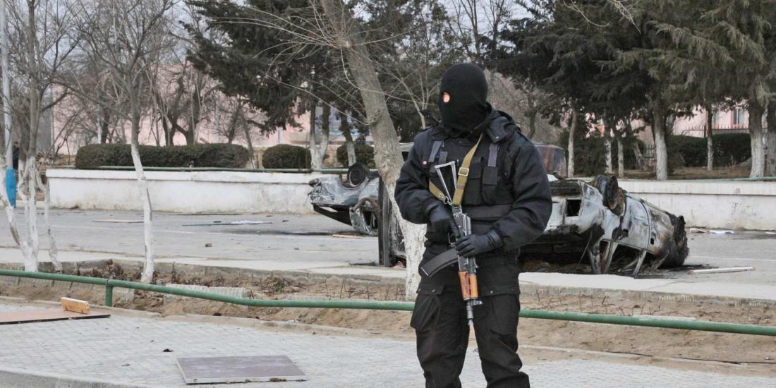 Οι αστυνομικές δυνάμεις έκλεισαν εμπορικά κέντρα, αλλά και χώρους διασκέδασης, ενώ έχει διακοπεί η συγκοινωνία στην πόλη Ακτομπέ.