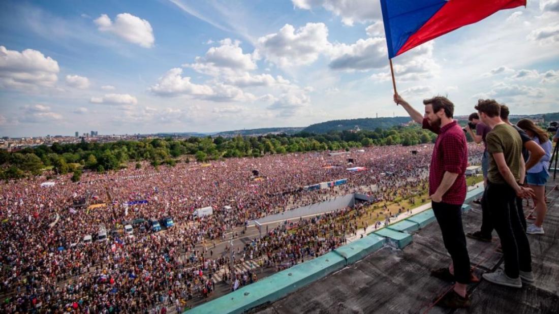 Οι διαδηλωτές από ολόκληρη την Τσεχία των 10,7 εκατομμυρίων κατοίκων συγκεντρώθηκαν στο πάρκο Λέτνα της Πράγας κρατώντας σημαίες της Τσεχίας και της ΕΕ, στο σημείο που έγιναν οι μεγαλύτερες διαδηλώσεις το Νοέμβριο του 1989, όταν το κομμουνιστικό καθεστώς στην (τότε) Τσεχοσλοβακία κατέρρευσε ειρηνικά, εβδομάδες μετά την πτώση του Τείχους στο Βερολίνο.