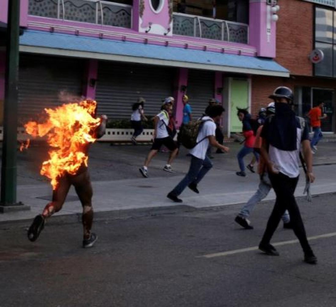 Εκεί ακριβώς, ένας άνδρας κατηγορήθηκε πως έκλεψε κατά την διάρκεια της διαδήλωσης εναντίον του Μαδούρο και το οργισμένο πλήθος πήρε τον Νόμο στα χέρια του και τον πυρπόλησε!