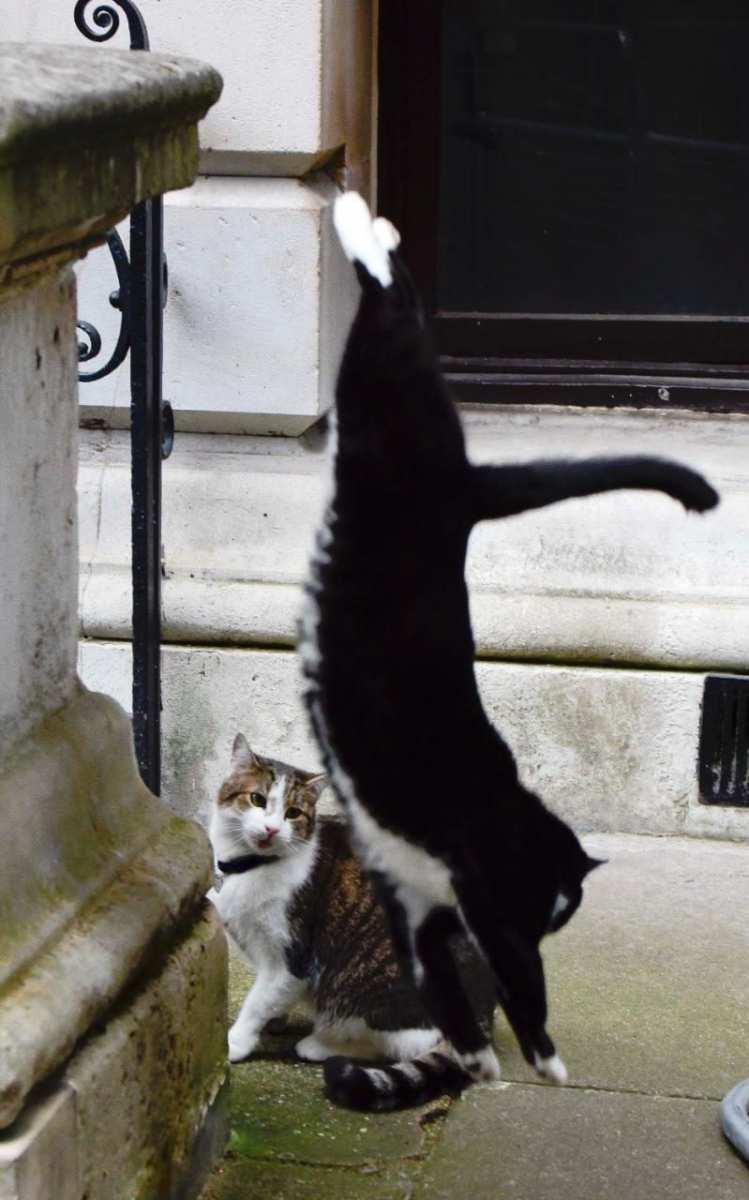 Ο Λάρι και ο Πάλμερστον, οι δύο γάτες της Ντάουνινγκ Στριτ είχαν τον πιο άγριο καυγά τους, σύμφωνα με ρεπόρτερ που καλύπτει την βρετανική πρωθυπουργική κατοικία. Ο Στιβ Μπλακ ήταν αυτόπτης μάρτυρας του καυγά, φωτογράφισε τις γάτες και καλεί την Ντάουνινγκ Στριτ να αναλάβει τις ευθύνες της.