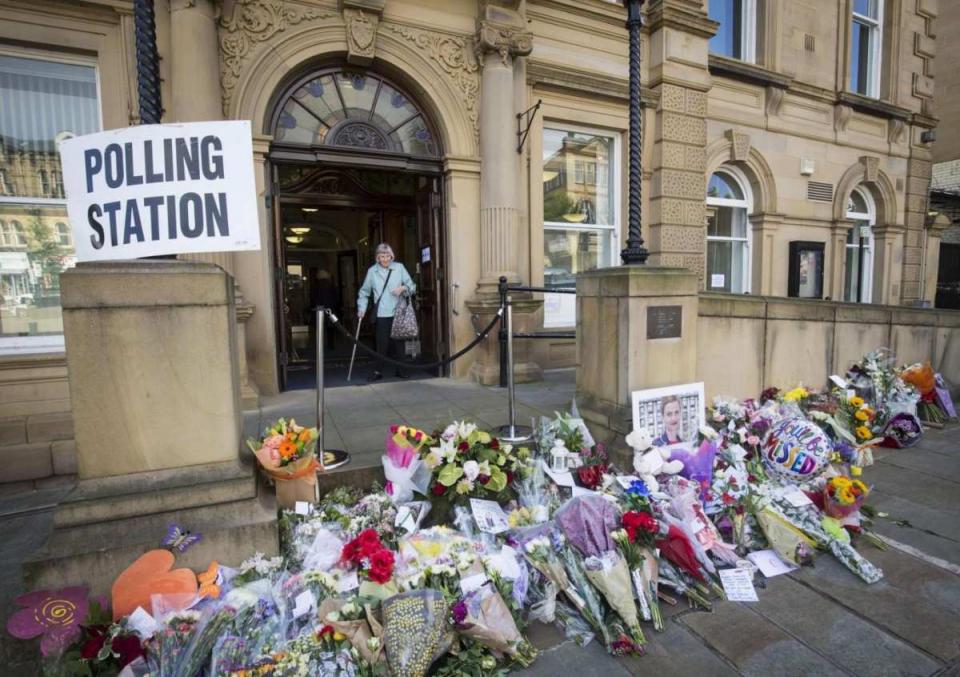 Λουλούδια έξω από το εκλογικό κέντρο που θα ψήφιζε η Τζο Κοξ