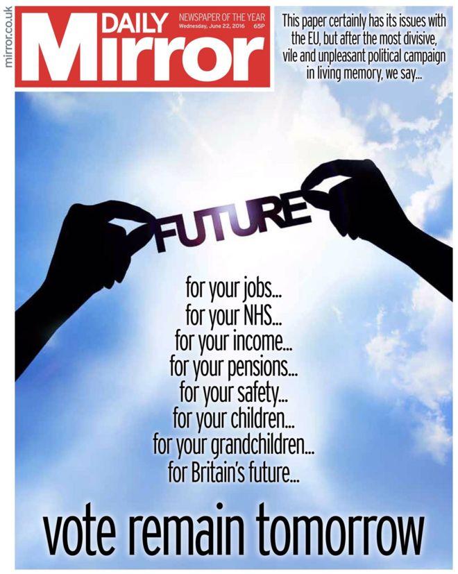 Μέλλον για τις δουλειές σας, το Εθνικό Σύστημα Υγείας, το εισόδημά σας, τις συντάξεις σας, την ασφάλειά σας, τα παιδιά σας, τα εγγόνια σας, το μέλλον της Βρετανίας...ψηφίστε Remain αύριο