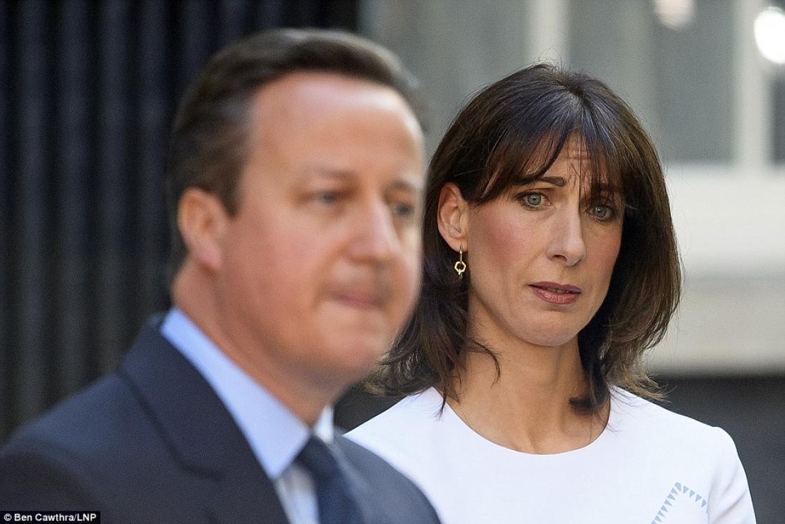 Στις 8:30 το πρωί, η πόρτα του αριθμού 10 της Ντάουνινγκ Στριτ άνοιξε και οι δημοσιογράφοι είδαν τον Ντέιβιντ Κάμερον και την σύζυγό του Σαμάνθα να προχωρούν χέρι-χέρι προς το πόντιουμ. Εκείνος άρχισε να μιλάει και εκείνη στάθηκε στα αριστερά του με ένα γενναίο χαμόγελο στο πρόσωπό της.
