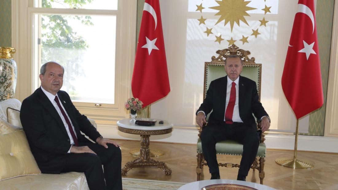 Υπέρ της «λύσης» των δυο κρατών στην Κύπρο τάχτηκε προκλητικά σήμερα ο Τουρκος πρόεδρος Ερντογάν κατά τη συνάντηση που ειχε στην Αγκυρα με τον νέο τουρκοκύπριο ηγέτη Ερσίν Τατάρ.
