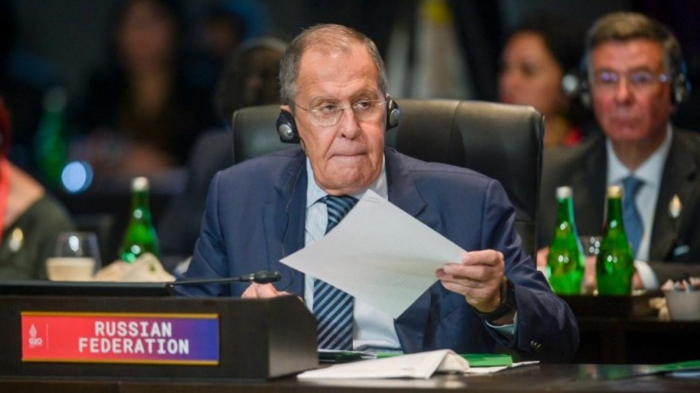 Ο ρώσος υπουργός Εξωτερικών Σεργκέι Λαβρόφ, που εκπροσωπεί τον Πούτιν στο Μπαλί, παρέμεινε στην αίθουσα κατά την διάρκεια της ομιλίας.