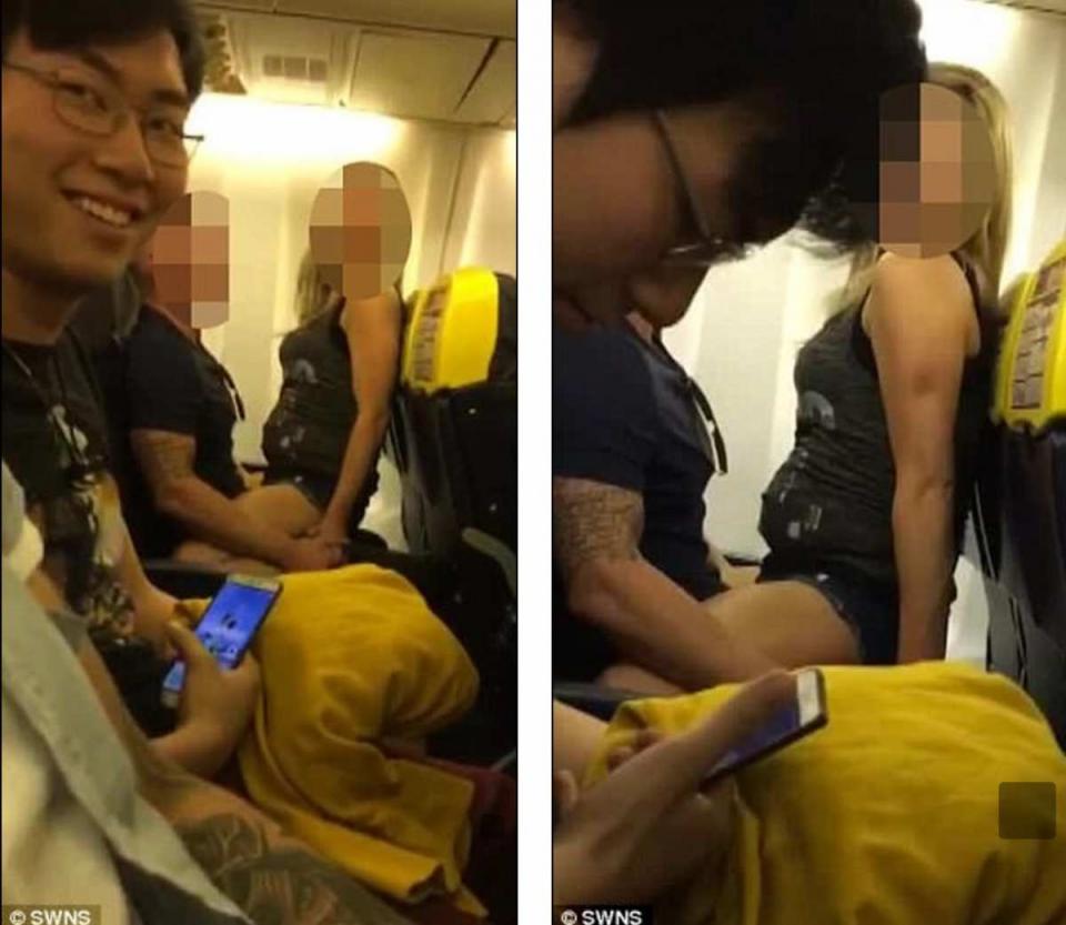 «Τους άκουσα στην αρχή να συζητούν για να το κάνουν, όμως σκέφτηκα ότι αστειεύονται. Ο τύπος φώναζε αν είχε κανείς μας προφυλακτικό. Όλοι γελάσαμε, όμως δέκα λεπτά αργότερα το έκαναν! Έμοιαζαν μεθυσμένοι. Είδαμε το κορίτσι να κατεβάζει το παντελόνι του, όπως έκανε και ο άντρας και μετά ανέβηκε επάνω του. Έπρεπε να βγάλω το κινητό μου και να το τραβήξω. Ποτέ μου δεν είχα ξαναδεί κάτι τέτοιο. Μια γυναίκα που καθόταν δίπλα στο ζευγάρι ζήτησε να κάτσει αλλού, όμως κανένας από το προσωπικό αέρος δεν έκανε τίποτα για να τους σταματήσει. Ούτε καν παρατήρηση δεν τους έκαναν », δήλωσε επιβάτης του αεροπλάνου.