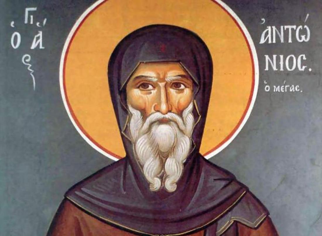 Ο Άγιος Αντώνιος ήταν ο θεμελιωτής του μοναχικού βίου στην Ανατολή. Γεννήθηκε γύρω στο 250 στην πόλη Κομά της Άνω Αιγύπτου, από γονείς εύπορους και ευλαβείς. Έζησε στα χρόνια ρωμαίων αυτοκρατόρων, όπως ο Διοκλητιανός (284-305), ο Μαξιμιανός (285-305) και ο Μέγας Κωνσταντίνος.