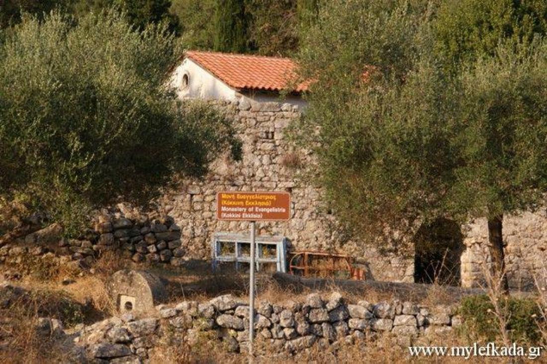Το ιστορικό μοναστήρι της Κόκκινης Εκκλησίας, της Ευαγγελίστριας βρίσκεται στα Πλατύστομα στη Λευκάδα.