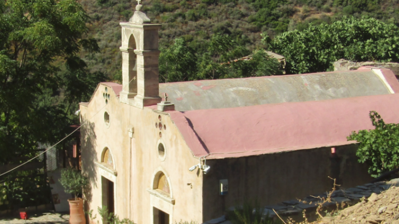 Ο κεντρικός ναός της Μονής ονομάζεται Καθολικό και αποτελεί το σημείο αναφοράς καθώς εκεί μαζεύονται κατά την τέλεση των ακολουθιών όλοι οι μοναχοί. Το καθολικό μας βρίσκεται στο κέντρο περίπου της μονής, είναι Ναός δίκλιτος , μορφής βασιλικής με το βόρειο κλίτος αφιερωμένο. Δεν γνωρίζουμε την ακριβή χρονολογία ανέγερσης του. Πιθανολογείται στο τέλος της βυζαντινής περιόδου. Έχει ένα θαυμάσιο ξυλόγλυπτο τέμπλο από το οποίο σώζεται μόνο το άνω μέρος και διακρίνεται το φύλλο χρυσού που είχε επενδυθεί. Κατά την ανασκαφή και αναπαλαίωση το 2008 φάνηκε ότι τοιχογραφίες μάλλον δεν υπήρχαν διότι είχε πυρποληθεί ο ναός από τους τούρκους (στο Ιερό βήμα είναι ακόμα φανερά τα σημάδια από την πυρπόληση της μονής το 1866. ). Επίσης βρέθηκε τάφος ενετικής περιόδου ( ο τάφος κατά την ανασκαφή το 2008 βρέθηκε συλημένος , και βρίσκεται μπροστά από την πύλη του τέμπλου του αγίου Παντελεήμονα).