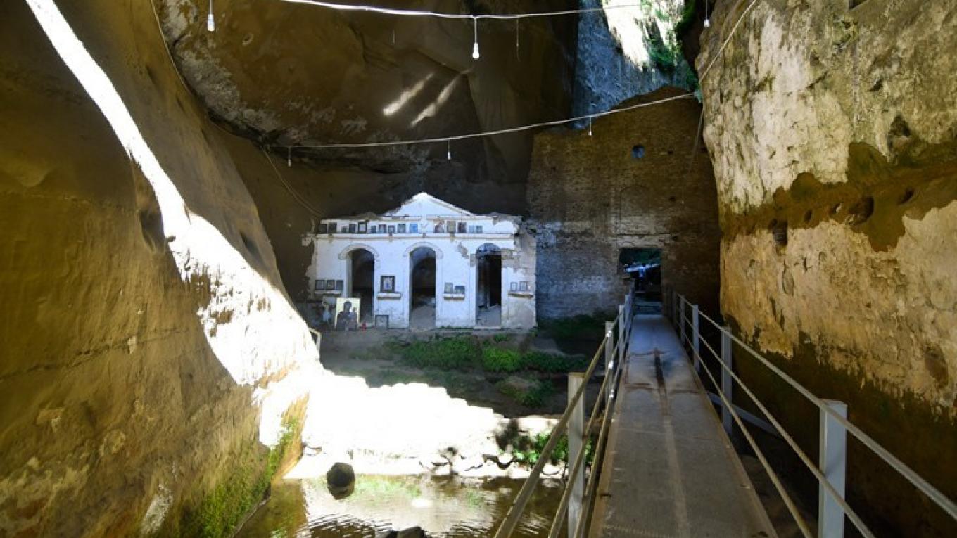 Η σπηλιά είναι χωρισμένη σε δύο μέρη. Στο πρώτο υπάρχει το ιερό της Μονής, ένα είδος διαδρόμου - εξώστη και ένα πηγάδι. Λέγεται ότι στο σημείο, όπου έπεσε το άψυχο σώμα του ασκητή, άρχισε να αναβλύζει νερό. Αυτός ήταν και ο λόγος που φτιάχτηκε το πηγάδι. Στο δεύτερο μέρος βρίσκονται τα ερείπια της βυζαντινής μονής, που χρονολογείται γύρω στο 1200 μ.Χ. Η μονή είναι κτισμένη μέσα σε ένα κοίλωμα 300 τ.μ., και ύψους 50 μέτρων.