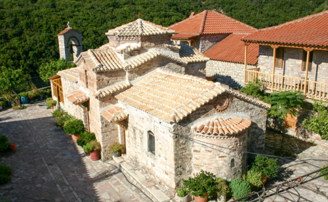 Στη Μονή, που είναι αφιερωμένη στα Εισόδια της Θεοτόκου, οδηγεί επίσης και μονοπάτι από το κέντρο του χωριού. Η Μονή σύμφωνα με εντοιχισμένη πλάκα- χτίστηκε το 1672, σε διαφορετική θέση από τη σημερινή, στην οποία και ξανακτίστηκε εκ βάθρων με τη σημερινή της μορφή το 1819.