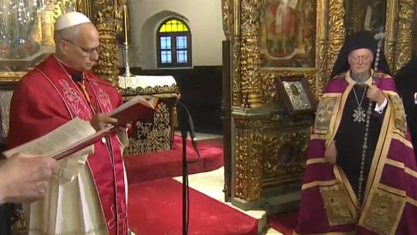 Ο Πάπας Λέων και ο Οικουμενικός Πατριάρχης Βαρθολομαίος θα εισέλθουν μαζί στον πατριαρχικό ναό του Αγίου Γεωργίου και στη συνέχεια θα τελεστεί δοξολογία. Το παρών θα δώσουν ο Πατριάρχης Αλεξανδρείας Θεόδωρος, ιεράρχες των Εκκλησιών της Κωνσταντινούπολης και της Ρώμης, καθώς και εκπρόσωποι των διπλωματικών αρχών.