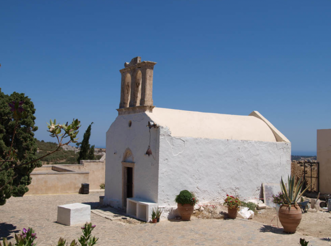 Η μονή έχει κτιστεί πάνω σε λόφο και σε τρία διαφορετικά επίπεδα, λόγω της κλίσης του εδάφους. Τα κτίρια αναπτύσσονται γύρω από μια αυλή, ως ενιαίο συμπαγές σύνολο, το οποίο σε συνδυασμό με τα μικρά ανοίγματα και τις τυφεκιοθυρίδες τονίζει το φρουριακό τους χαρακτήρα. Η κεντρική πύλη με το τριγωνικό αέτωμα οδηγεί σε μια μικρή αυλή όπου θα δείτε τον στάβλο και την αποθήκη τροφίμων. Από εκεί, μια σκάλα οδηγεί στην κεντρική αυλή με το καθολικό που περιτριγυρίζεται από τα κελιά των μοναχών, το αρχονταρίκι, το ελαιοτριβείο και το πατητήρι. Υπάρχει και δεύτερη μικρότερη πύλη, η Χαρασανή, στη νότια πλευρά, που οδηγούσε στο χωριό Χαρασό.